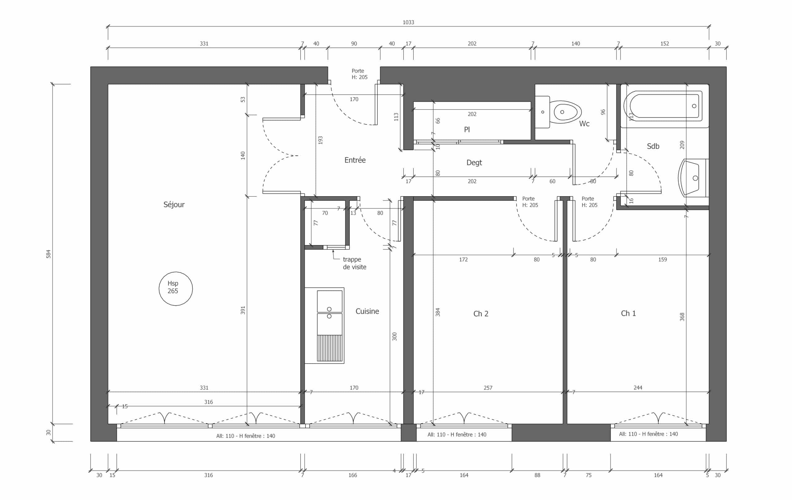 – Un plan d’aménagement coté pour visualiser l’organisation de l’espace et les dimensions des différents éléments .